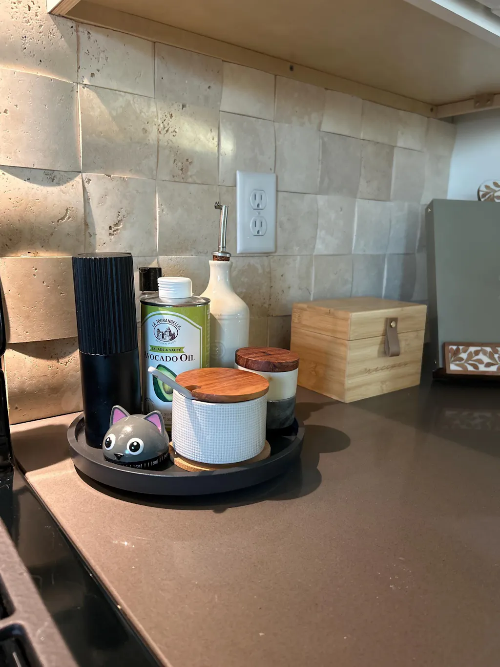 Using this in your kitchen for oils? Add a note to your order and we will provide a free coaster to place the oil on. Concrete, by nature, is an incredibly porous material. Please expect small air bubbles in the concrete and possible variations in color. It will patina and change over time depending on its use. Please keep in mind that while every piece is sealed and waxed, sitting water, soap, or oil can penetrate the sealer and leave rings or spots.