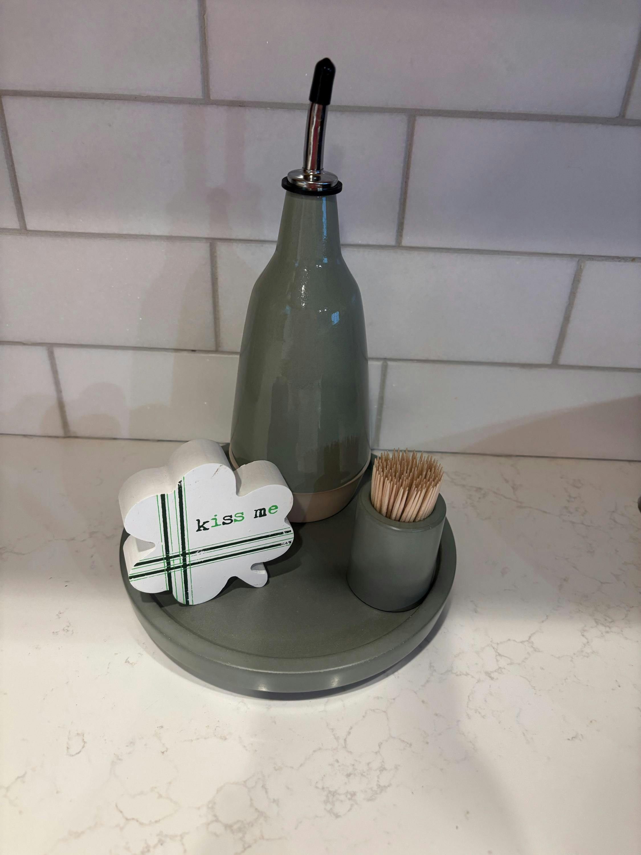 Using this in your kitchen for oils? Add a note to your order and we will provide a free coaster to place the oil on. Concrete, by nature, is an incredibly porous material. Please expect small air bubbles in the concrete and possible variations in color. It will patina and change over time depending on its use. Please keep in mind that while every piece is sealed and waxed, sitting water, soap, or oil can penetrate the sealer and leave rings or spots.
